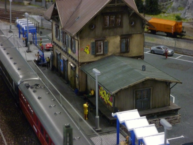 Besonderheiten: kompakte Ablage H0 Anlage mit vielen Spielmöglichkeiten, Oberleitung, durch Anschluss-Gleis ist diese Anlage bei einer Erweiterung zu einer größeren Anlage als gut einsetzbar. Leichte Bauweise mit vielen schönen Details.